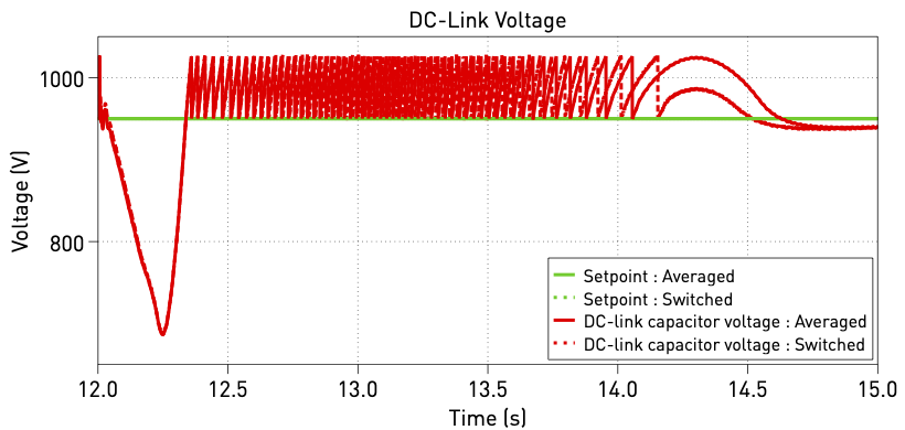 Fig. 26 Comparison of the DC-link voltage between the averaged and switched inverter model