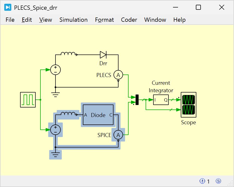 PLECS Spice solvers are capable of simulating mixed-signal hybrid schematics that contain both standard PLECS and SPICE electrical circuits.