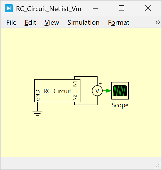 For example, by manually copying the netlist corresponding to the Example RC Circuit in the dialog of a netlist component, we obtain the schematic depicted in Fig. 126.