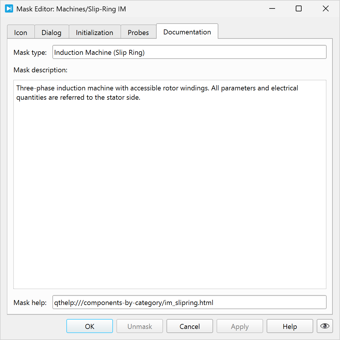 The mask type is a string used only for purposes of documentation. PLECS displays this string in the dialog box and appends “(mask)” in order to differentiate masked subsystems from built-in components.
